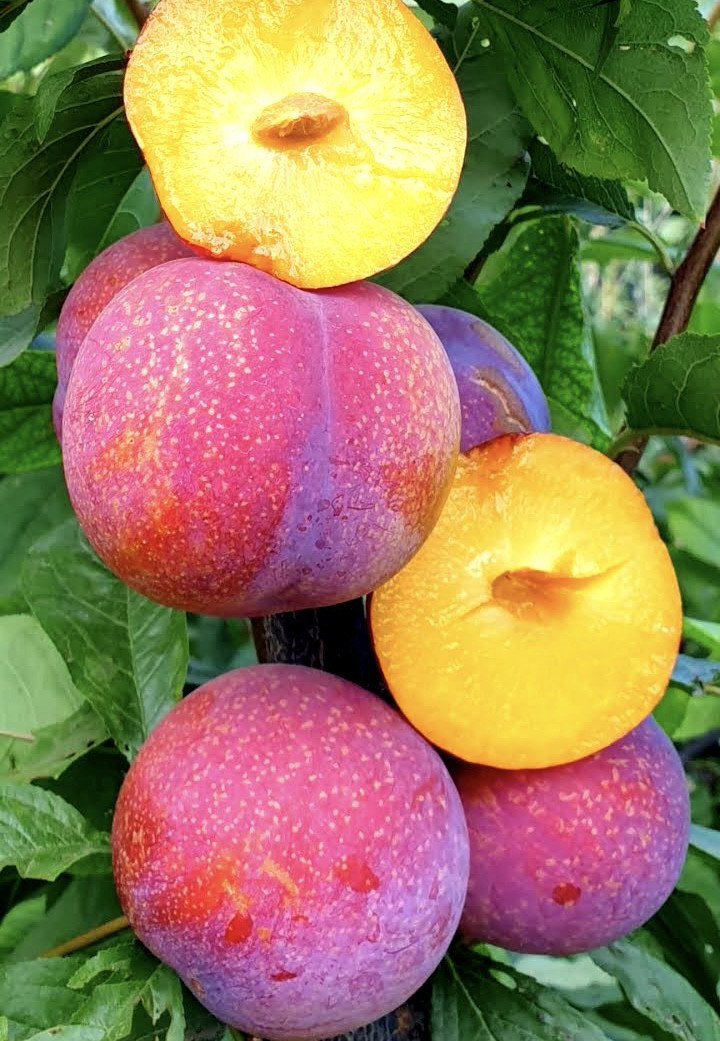 Слива диплоїдная "Пінк Сатурн" - це диплоїдна слива середнього терміну дозрівання, італійської селекції. Транспортабельність і товарність високі. Опис рослини: дерево середньоросле, крона куляста, середньо загущена, листя великі. Сорт самоплідний, але для кращого запилення поруч повинні знаходитися кілька дерев сливи. Опис плода: Плоди дуже великі, розміром 100-150г., жовтого кольору з яскраво-рожевим рум'янцем на всій поверхні, з білими крапками, округлої форми.